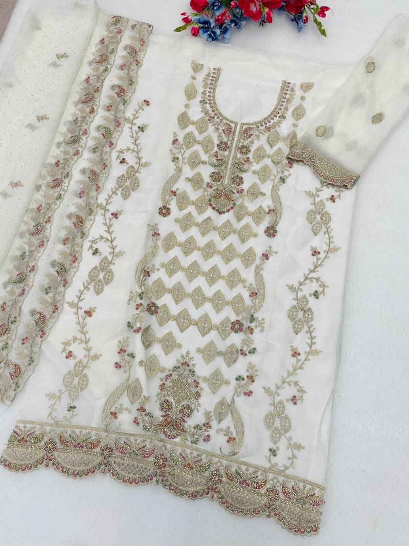 | Product Name | White Silk Semi Stitched Suit With Embroidery & Sequence Work | |
