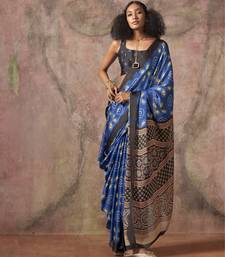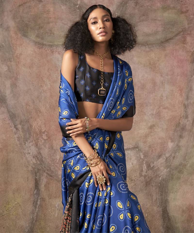 Ajrakh print satin georgette saree with bandhani combination – ethnic fusion elegance