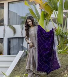 | • | Dupatta | : | Color- Purple / Fabric- Silk Blend |