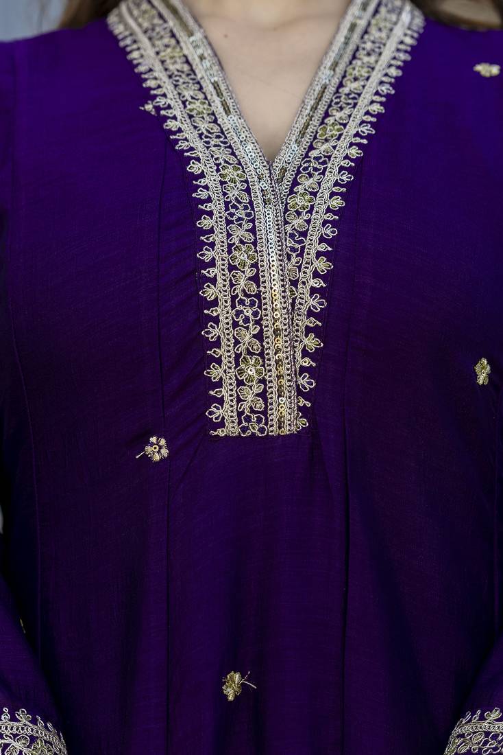 | • | Kameez | : | Color- Purple / Fabric- Silk Blend |