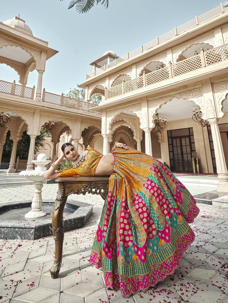 Banarasi silk lehenga choli with zari, sequins & swarovski work for wedding & reception