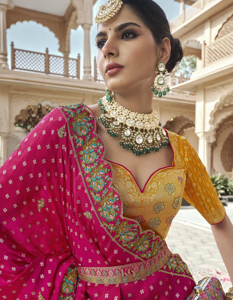 | Product Description | Step Into Elegance With This Royal Banarasi Silk Lehenga Choli, Designed To Give You A Luxurious And Graceful Look For Weddings And Grand Occasions. Crafted With Premium Quality Silk Fabric, This Lehenga Features Intricate Zari Weaving Combined With Rich Traditional Motifs That Reflect Timeless Indian Craftsmanship. |