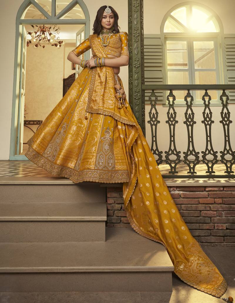 | Product Description | Step Into Elegance With This Royal Banarasi Silk Lehenga Choli, Designed To Give You A Luxurious And Graceful Look For Weddings And Grand Occasions. Crafted With Premium Quality Silk Fabric, This Lehenga Features Intricate Zari Weaving Combined With Rich Traditional Motifs That Reflect Timeless Indian Craftsmanship. |