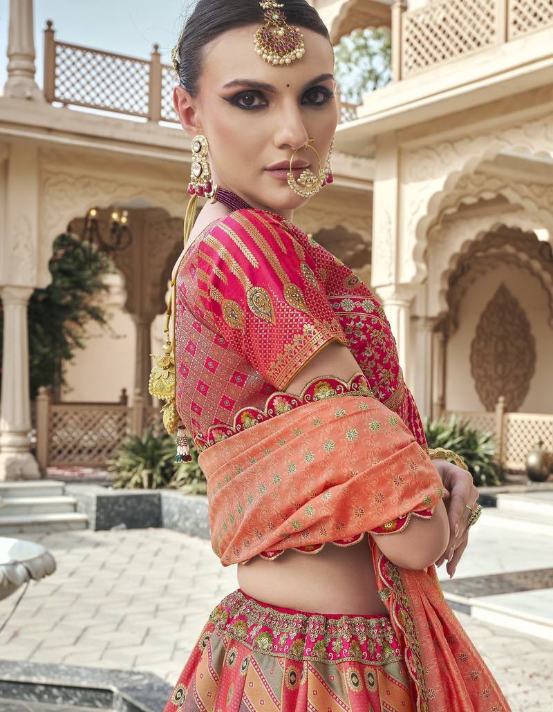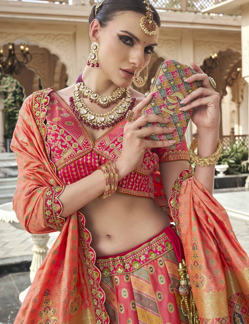 | Product Description | Step Into Elegance With This Royal Banarasi Silk Lehenga Choli, Designed To Give You A Luxurious And Graceful Look For Weddings And Grand Occasions. Crafted With Premium Quality Silk Fabric, This Lehenga Features Intricate Zari Weaving Combined With Rich Traditional Motifs That Reflect Timeless Indian Craftsmanship. |
