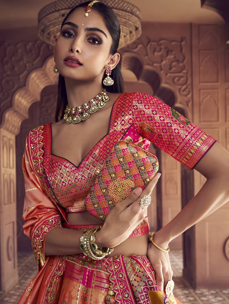 | Product Description | Step Into Elegance With This Royal Banarasi Silk Lehenga Choli, Designed To Give You A Luxurious And Graceful Look For Weddings And Grand Occasions. Crafted With Premium Quality Silk Fabric, This Lehenga Features Intricate Zari Weaving Combined With Rich Traditional Motifs That Reflect Timeless Indian Craftsmanship. |