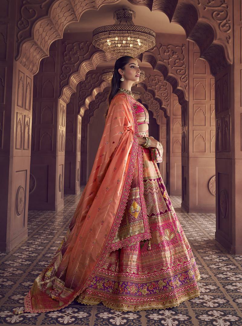 Banarasi silk lehenga choli with zari, sequins & swarovski work for wedding & reception
