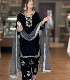 | Product Name | Black Designer Roman Silk Kurta Farshi Palazzo Set With Embroidered Organza Dupatta | |