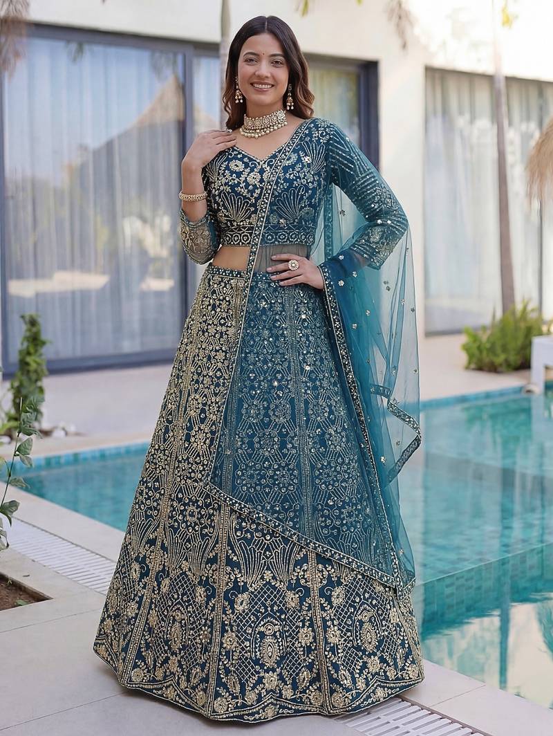 | Product Name | Blue Color Butterfly Net Lehenga Choli With Sequins & Cording Embroidery – Bridal & Party Wear Set With Dupatta | |