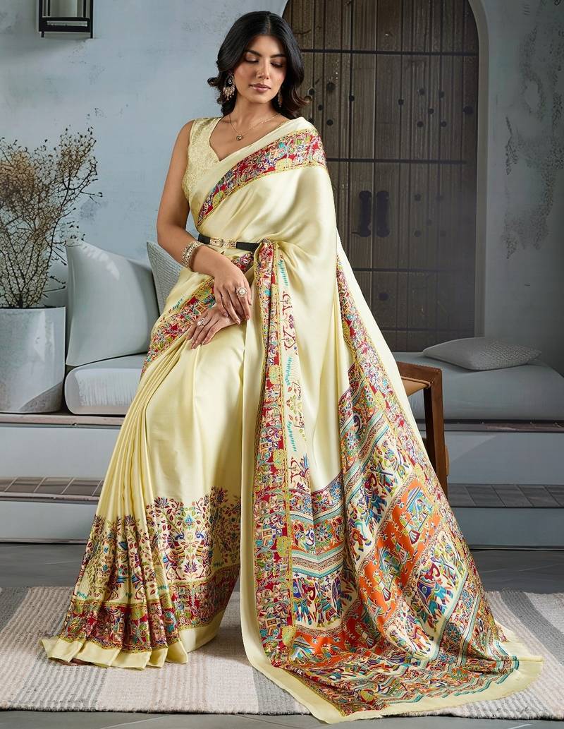 | Product Name | Cream Color Soft Modal Satin Ajrakh Print Saree – Timeless Ethnic Collection | |