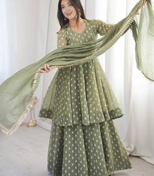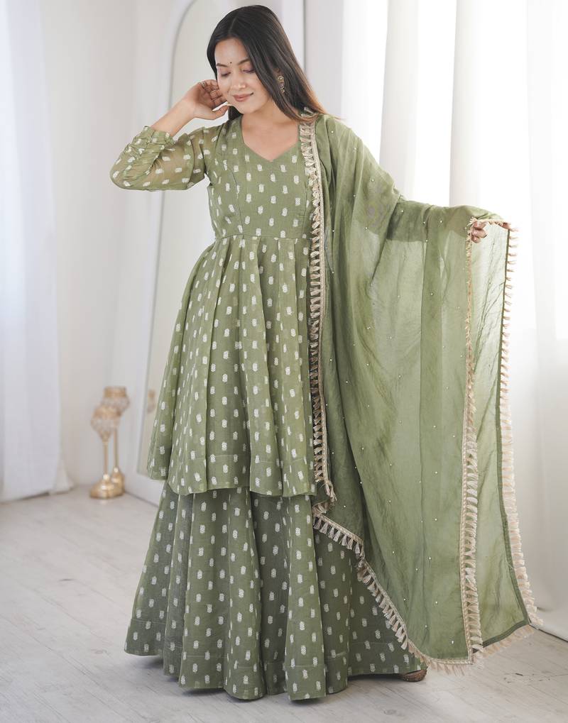 Crunchy silk sharara suit with jacquard butti & dupatta stitched