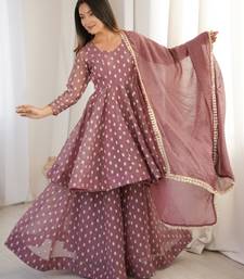 Crunchy silk sharara suit with jacquard butti & dupatta stitched