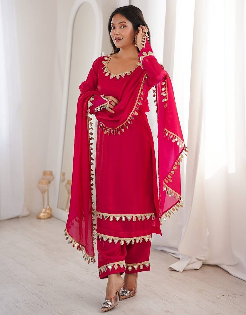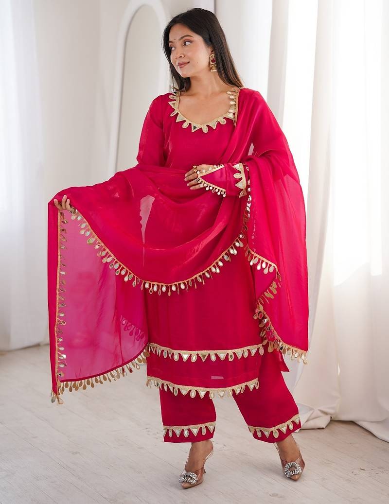 | • | Dupatta | : | Color- Hot Pink / Fabric- Silk Blend |