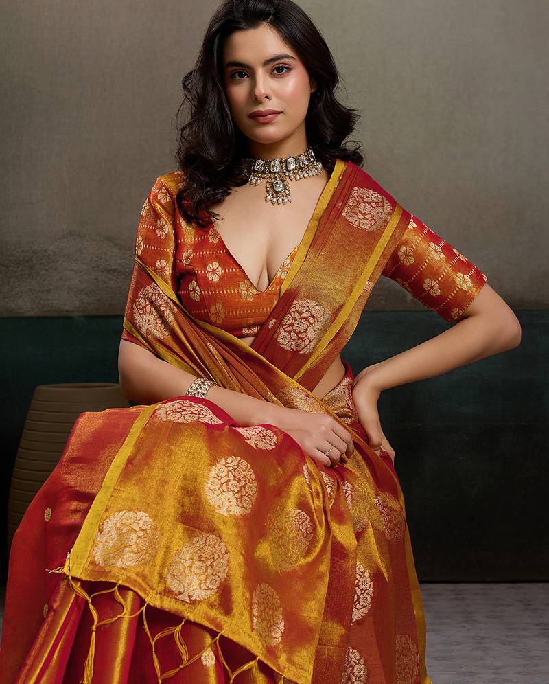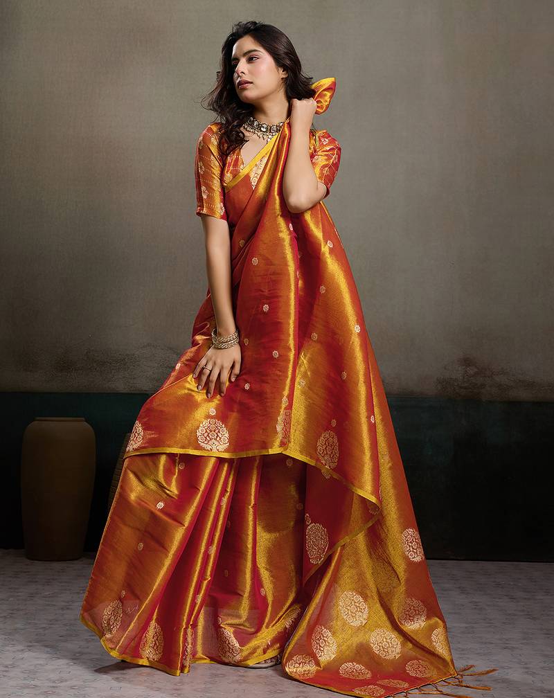 Elegant tissue silk saree with unstitched blouse | lightweight festive & party wear saree