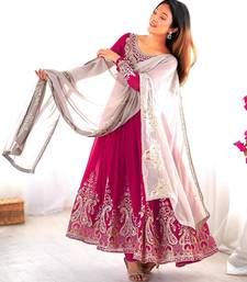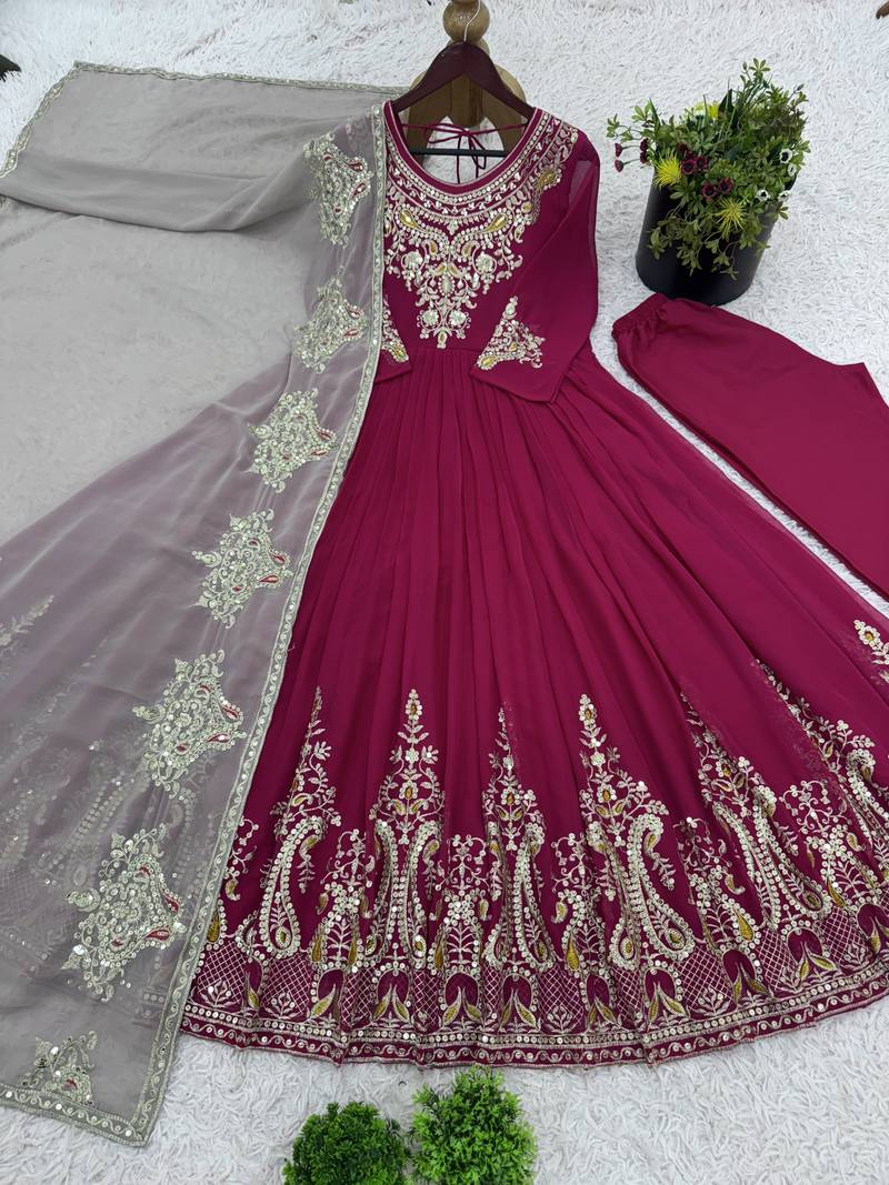 Embroidered georgette anarkali suit with dupatta & pant set stitched