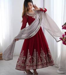 | • | Dupatta | : | Color- Maroon / Fabric- Georgette |