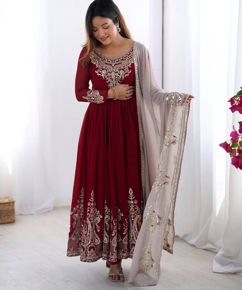 | Product Description | Step Into Timeless Elegance With This Designer Anarkali Three Piece Set, Crafted In Premium Heavy Georgette Fabric. Adorned With Intricate Multi Thread Embroidery And 5mm Sequence Work, This Outfit Is Perfect For Weddings, Festive Occasions, And Special Events. |