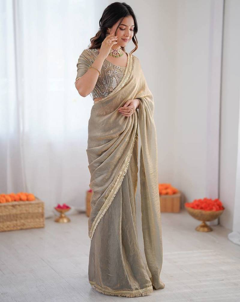 Heavy fendy silk ready-to-wear saree with elegant lace & designer blouse