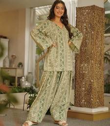 Light pista designer cambric cotton printed kurti set with salwar & dupatta – full stitched daily & office wear