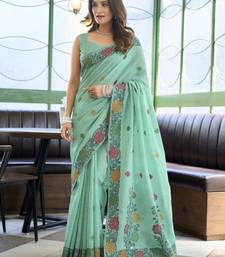| • | Saree | : | Color- Teal / Fabric- Linen |