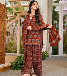 Maroon designer cambric cotton printed kurti set with salwar & dupatta – full stitched daily & office wear