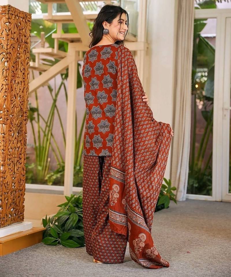 | Product Name | Maroon Designer Cambric Cotton Printed Kurti Set With Salwar & Dupatta – Full Stitched Daily & Office Wear | |