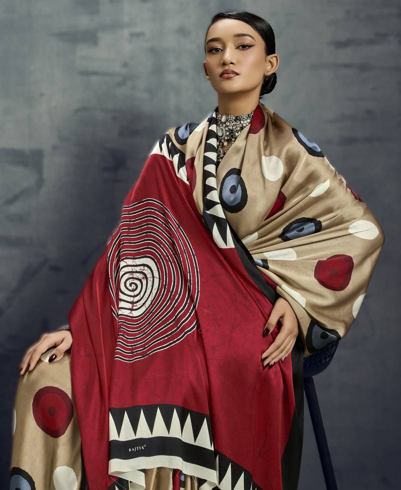 | Product Name | Modal Satin Ajrakh Print Saree – Traditional Handblock Inspired Ethnic Wear For Women | |