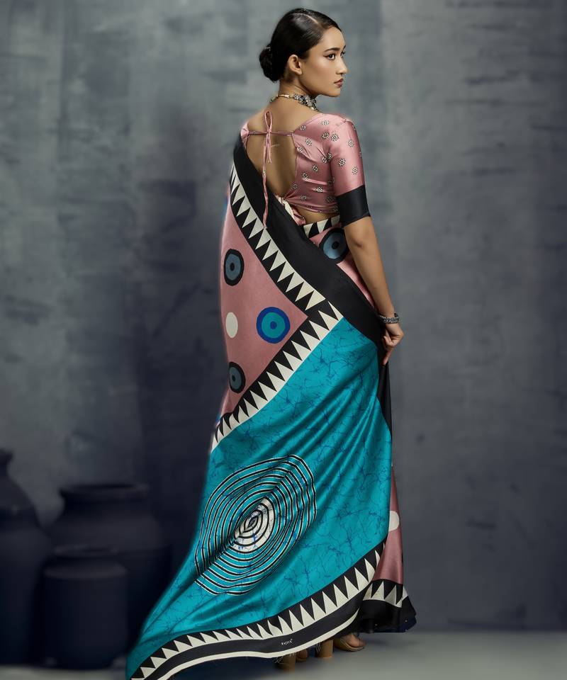 Modal satin ajrakh print saree – traditional handblock inspired ethnic wear for women