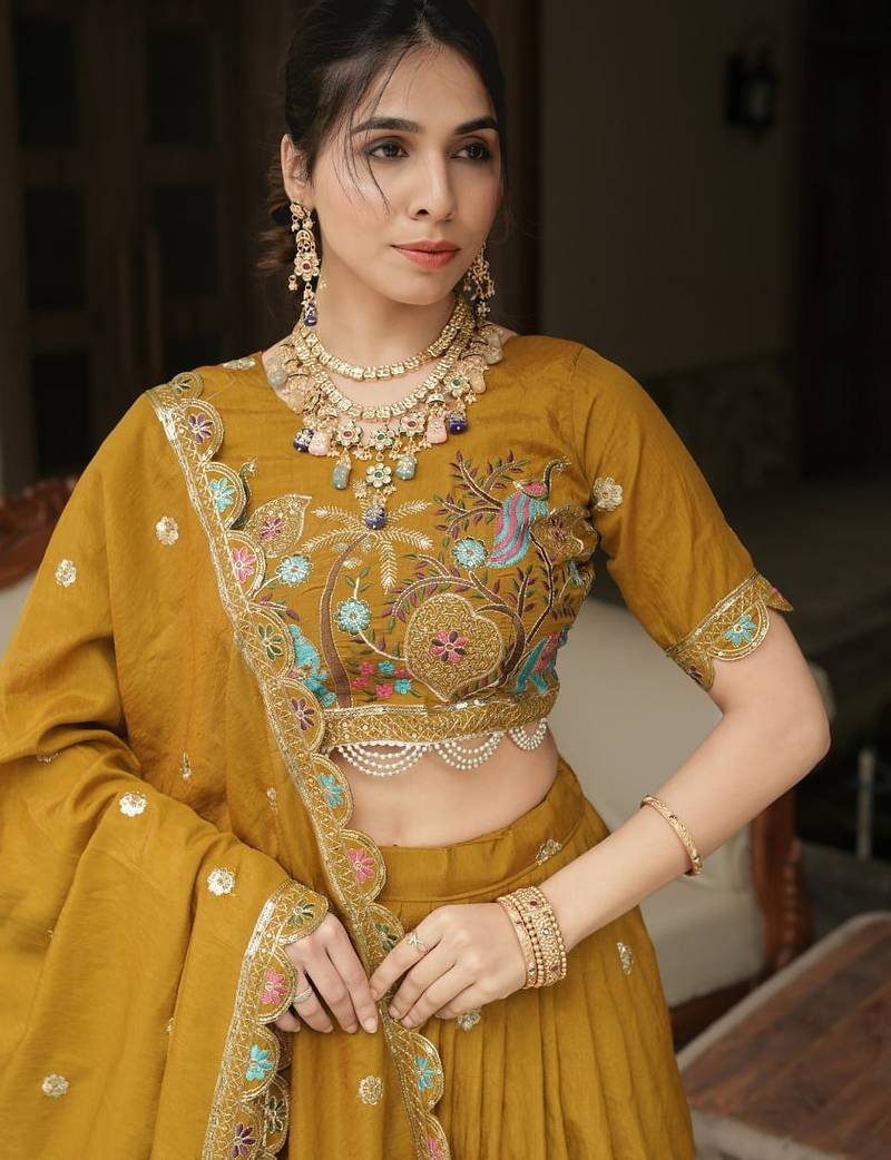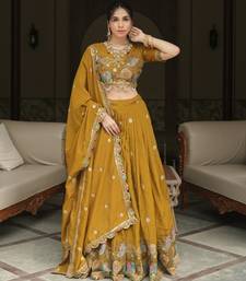 | Product Name | Mustard Embroidered Vichitra Lehenga Choli Set | |
