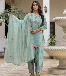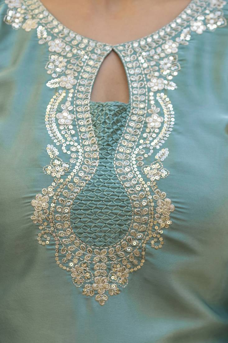 | Product Name | Pista Classic Traditional Patiala Suit Set In Japan Satin With Rich Embroidery & Floral Motifs For Festive | |