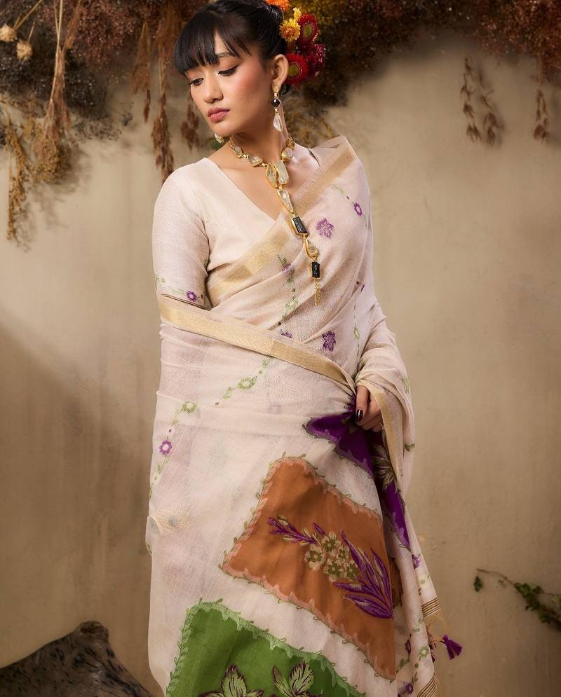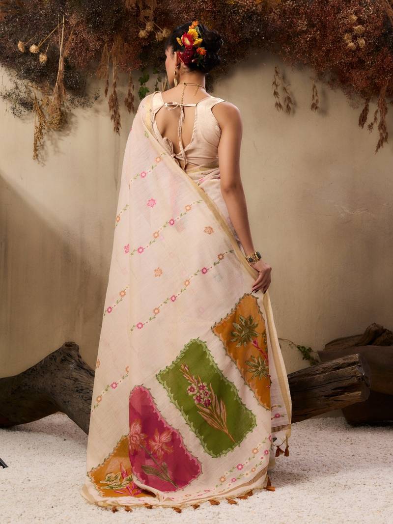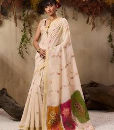 Premium jamdani soft muga cotton saree with resham weaving & zari border | elegant floral pallu saree