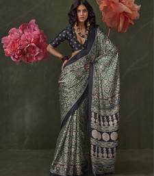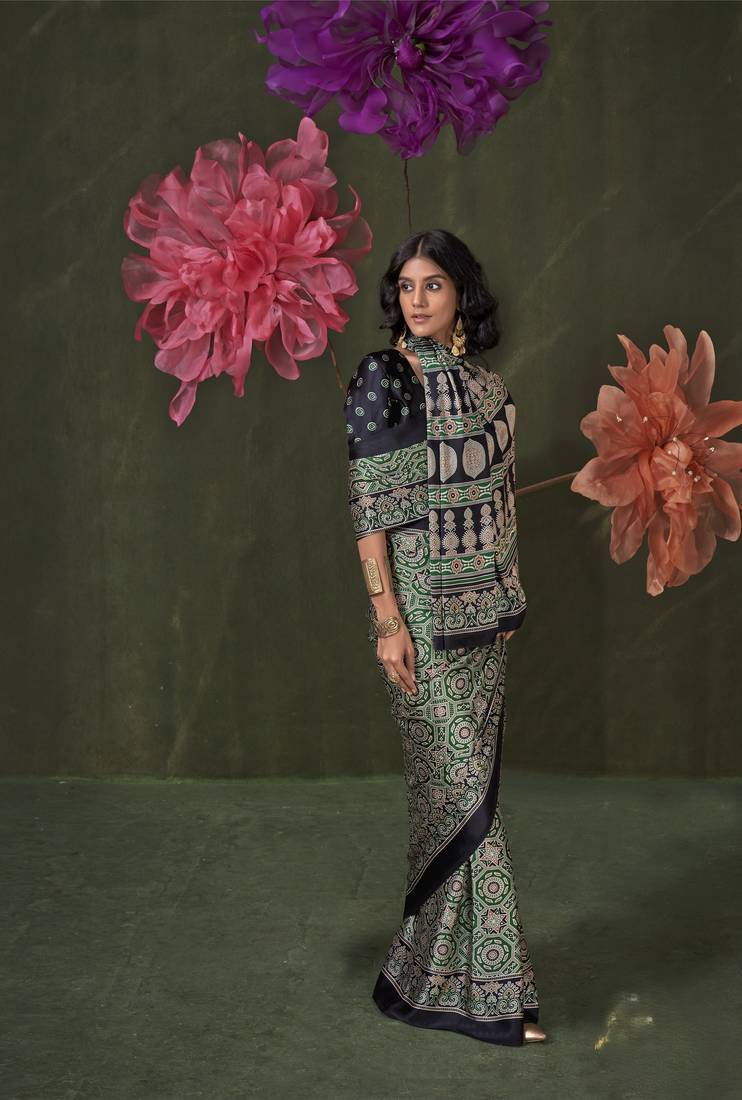 Printed ajrakh satin crepe saree – traditional art with a modern touch