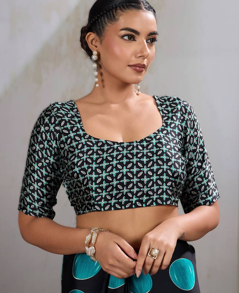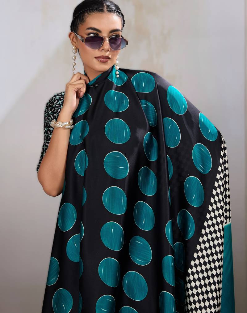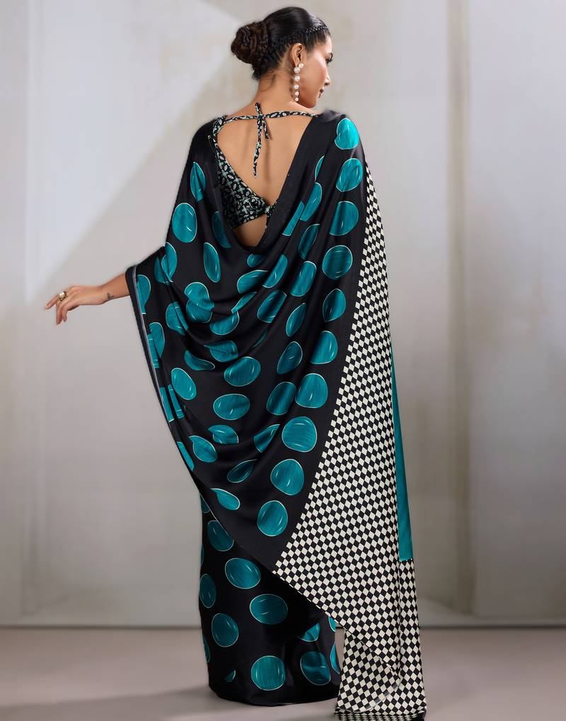 | Product Name | Printed Ajrakh Satin Crepe Saree – Traditional Art With A Modern Touch | |