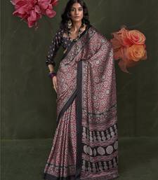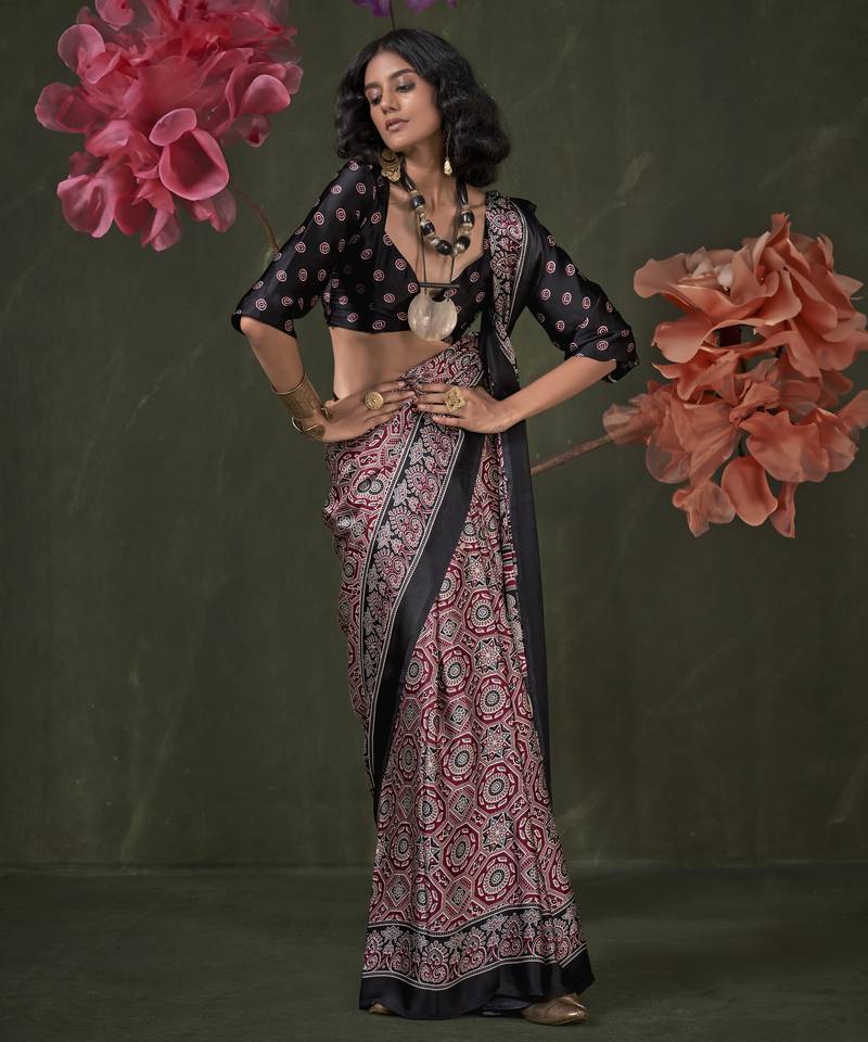 Printed ajrakh satin crepe saree – traditional art with a modern touch