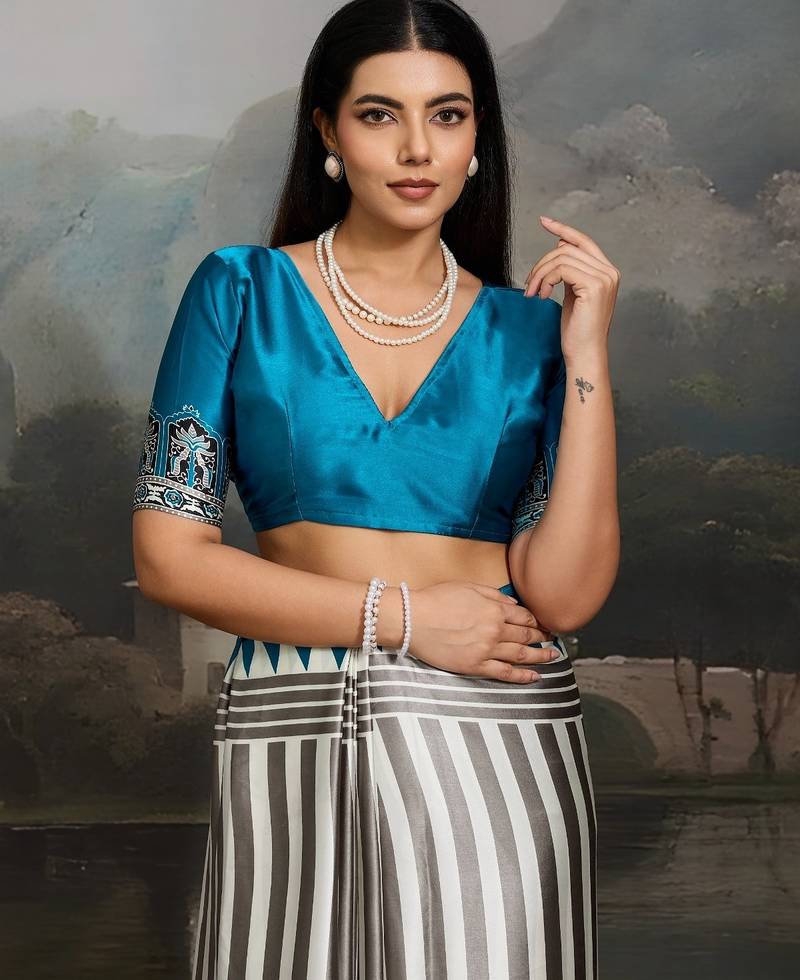 | Product Name | Printed Ajrakh Satin Crepe Saree – Traditional Art With A Modern Touch | |