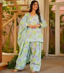 Sky designer cambric cotton printed kurti set with salwar & dupatta – full stitched daily & office wear