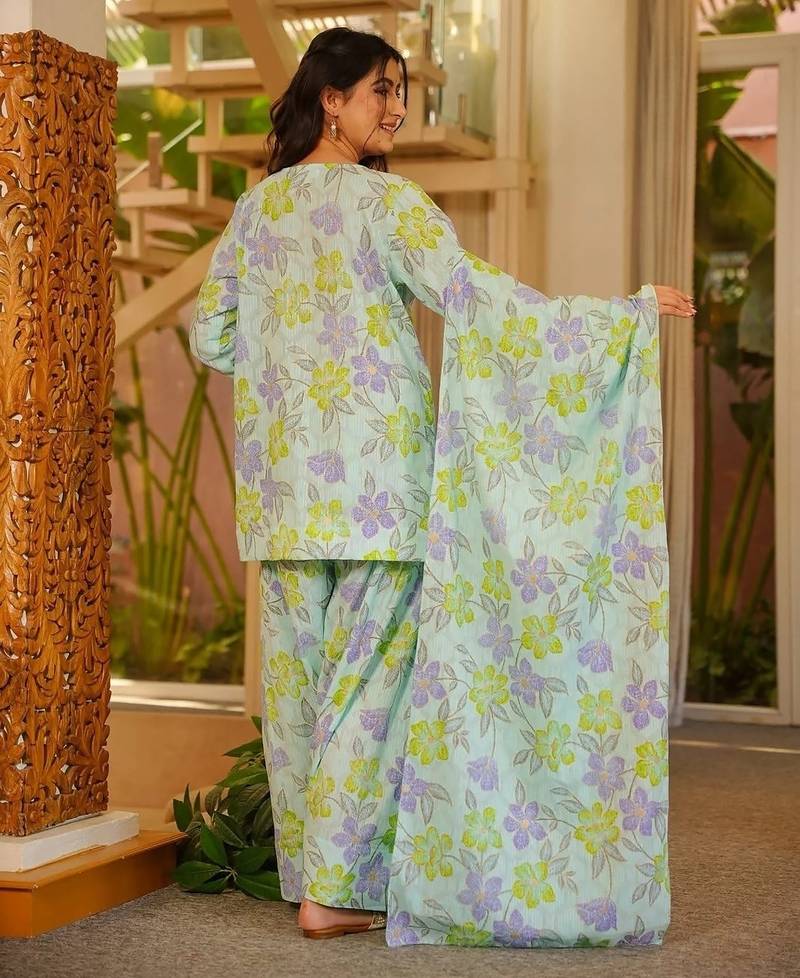 | Product Description | Upgrade Your Everyday Ethnic Style With This Beautifully Designed 3 Piece Cotton Kurti Set, Crafted For Comfort And Elegance. Made From Premium Cambric Cotton Fabric, This Outfit Features Heavy Digital Prints That Add A Fresh And Vibrant Appeal, Making It Perfect For Daily Wear And Office Use. |