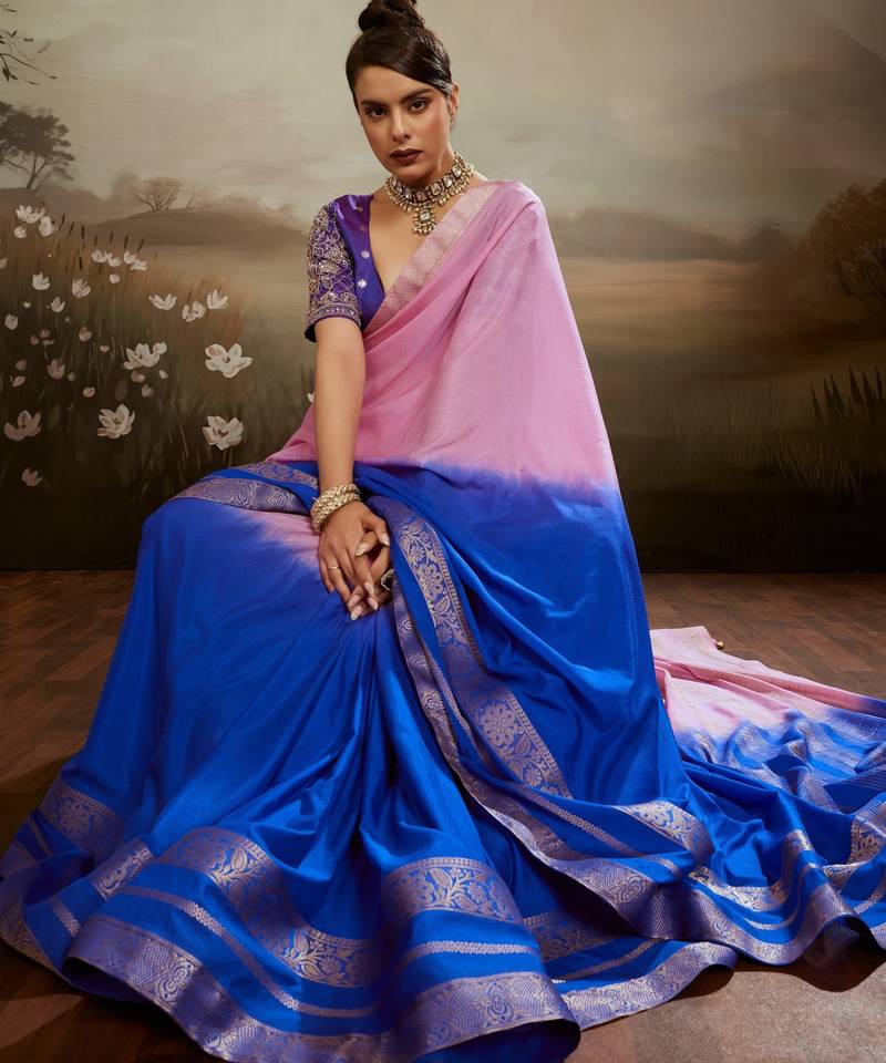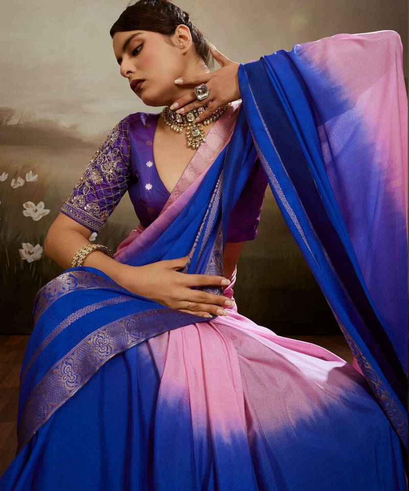 Soft chiffon saree with summer gradient shades & zari woven chit pallu