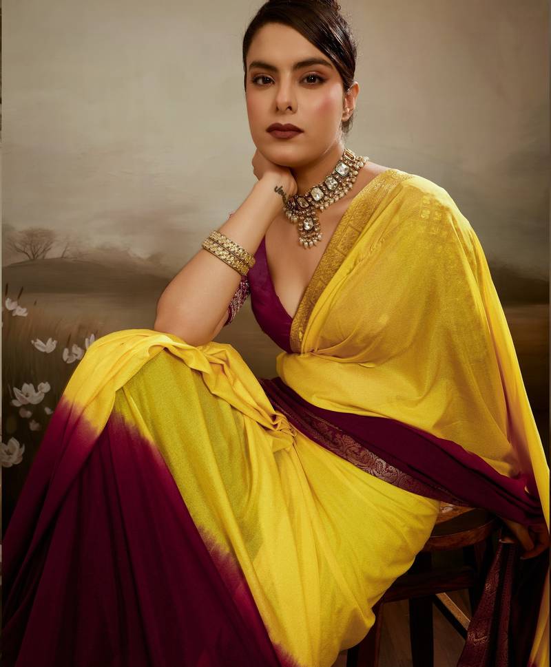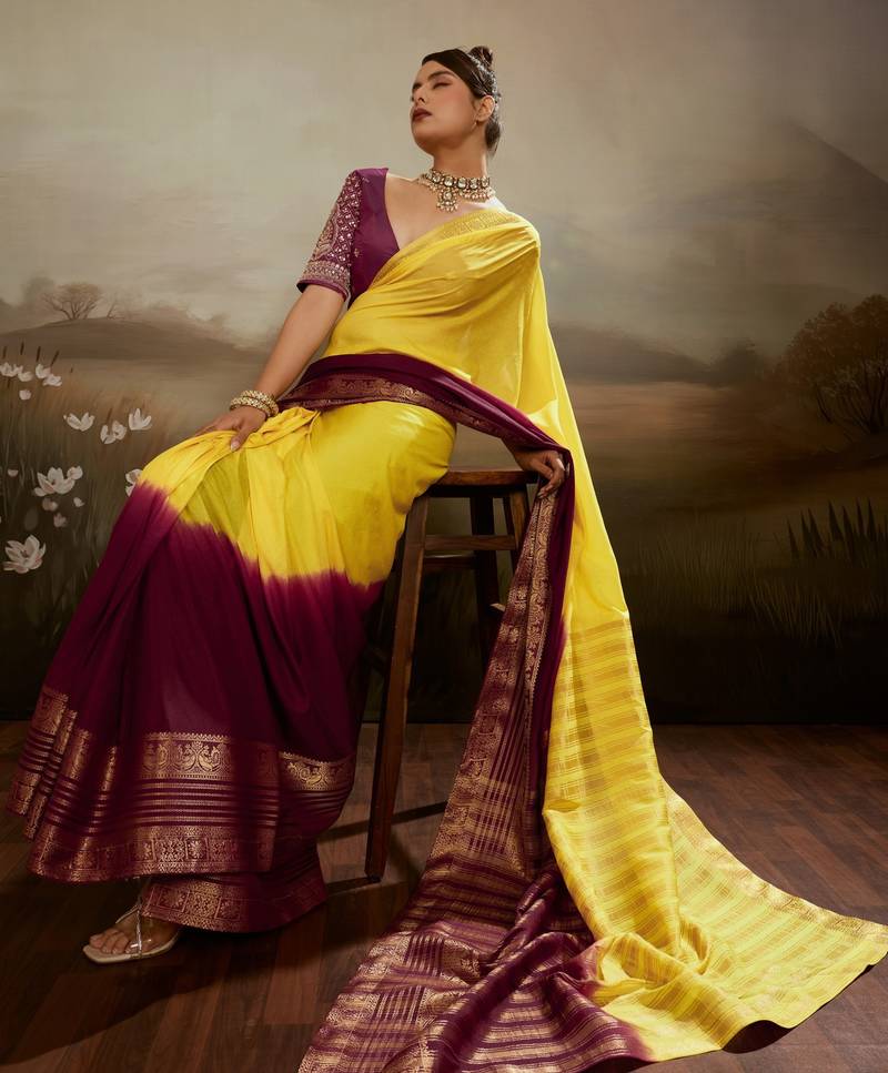 Soft chiffon saree with summer gradient shades & zari woven chit pallu