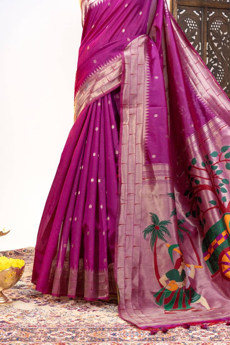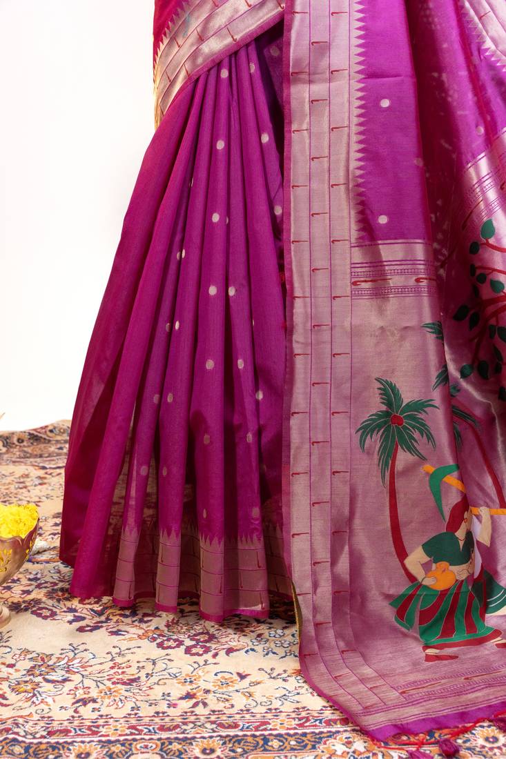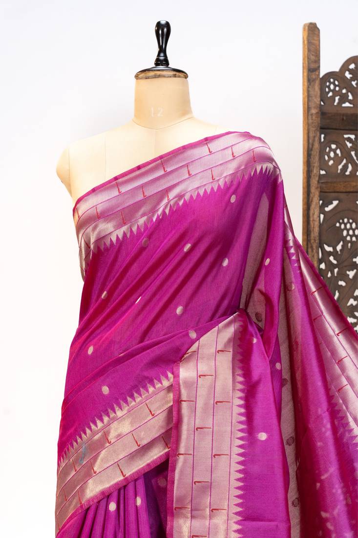 Soft khadi raw silk saree with meena weaving paithani pallu & triple muniya temple border – rich zari work
