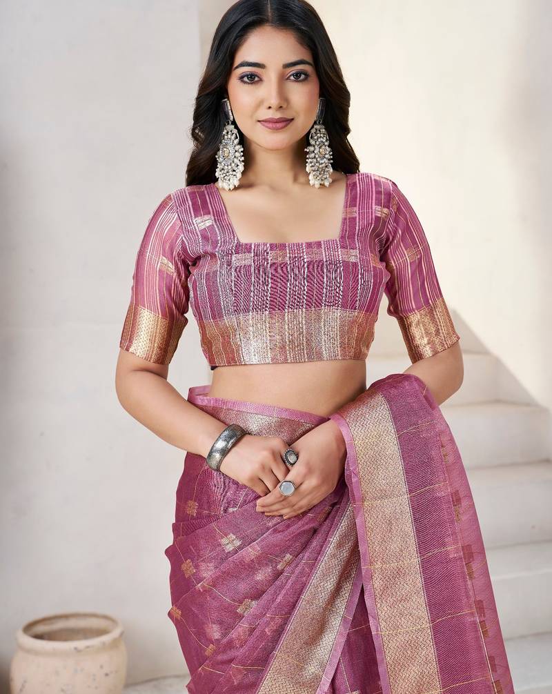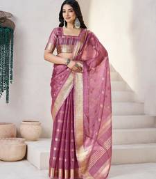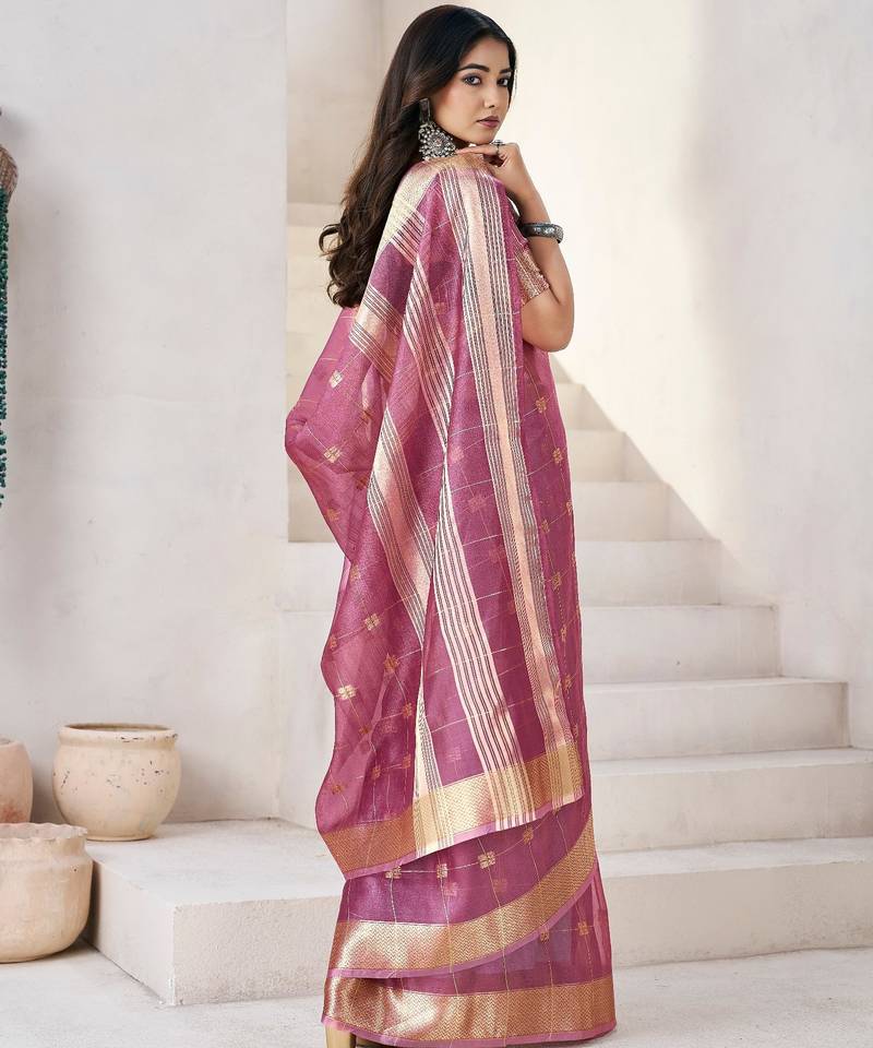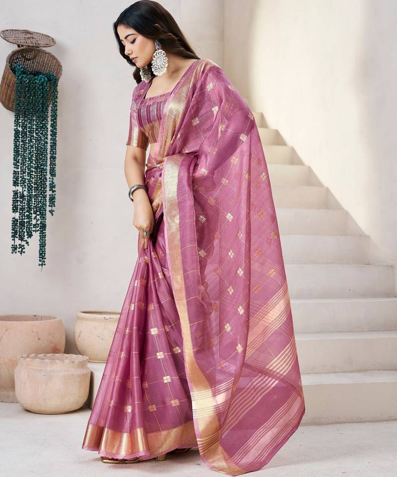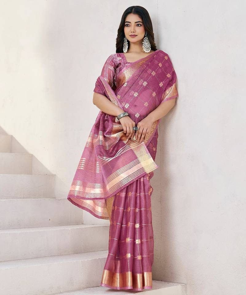Soft linen cotton silk saree with gold zari weaving | elegant party & wedding wear saree
