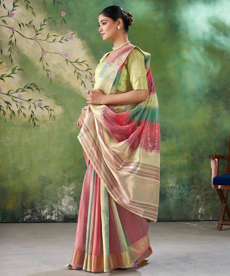 Soft linen cotton silk saree with gold zari weaving | elegant party & wedding wear saree