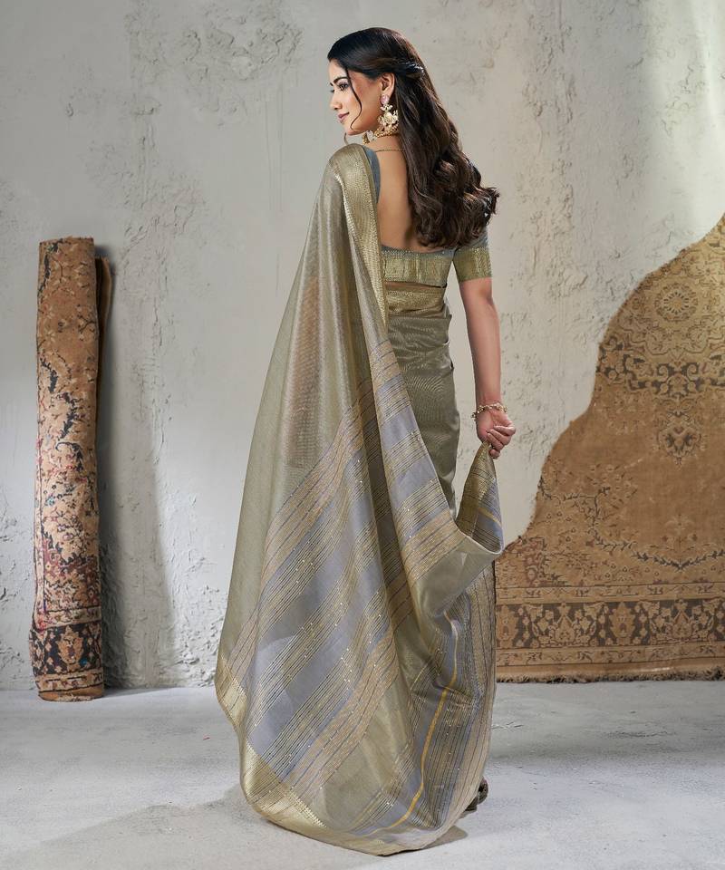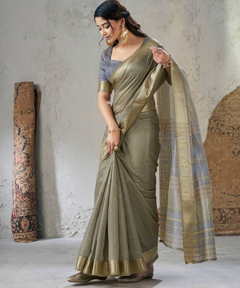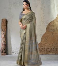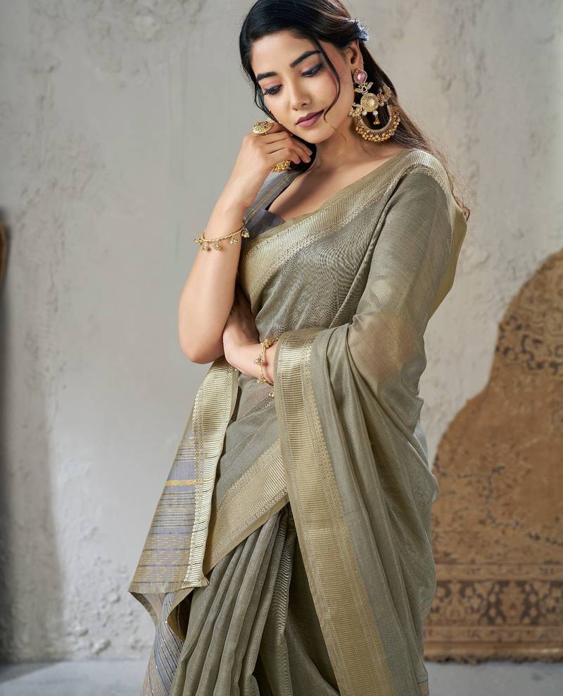 Soft linen cotton silk saree with gold zari weaving | elegant party & wedding wear saree