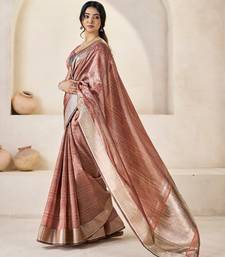Soft linen cotton silk saree with gold zari weaving | elegant party & wedding wear saree