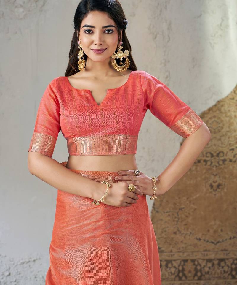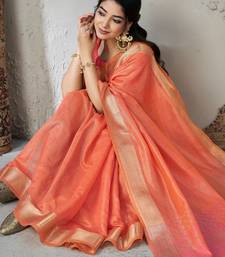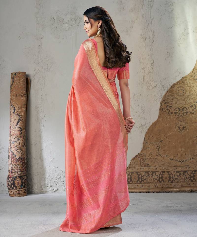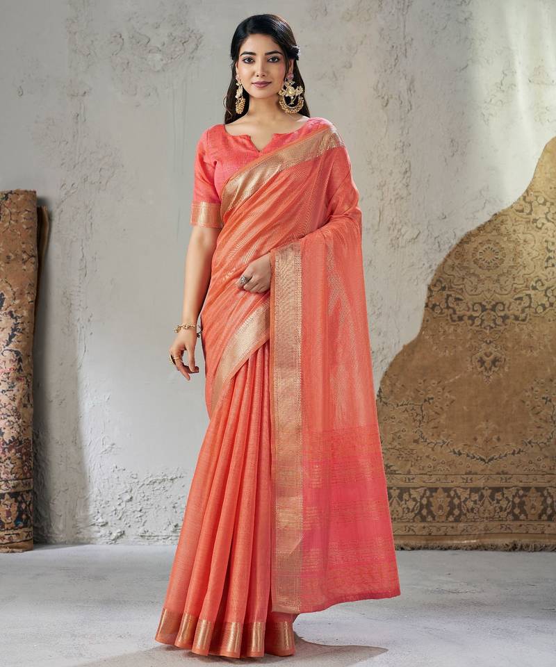 Soft linen cotton silk saree with gold zari weaving | elegant party & wedding wear saree