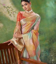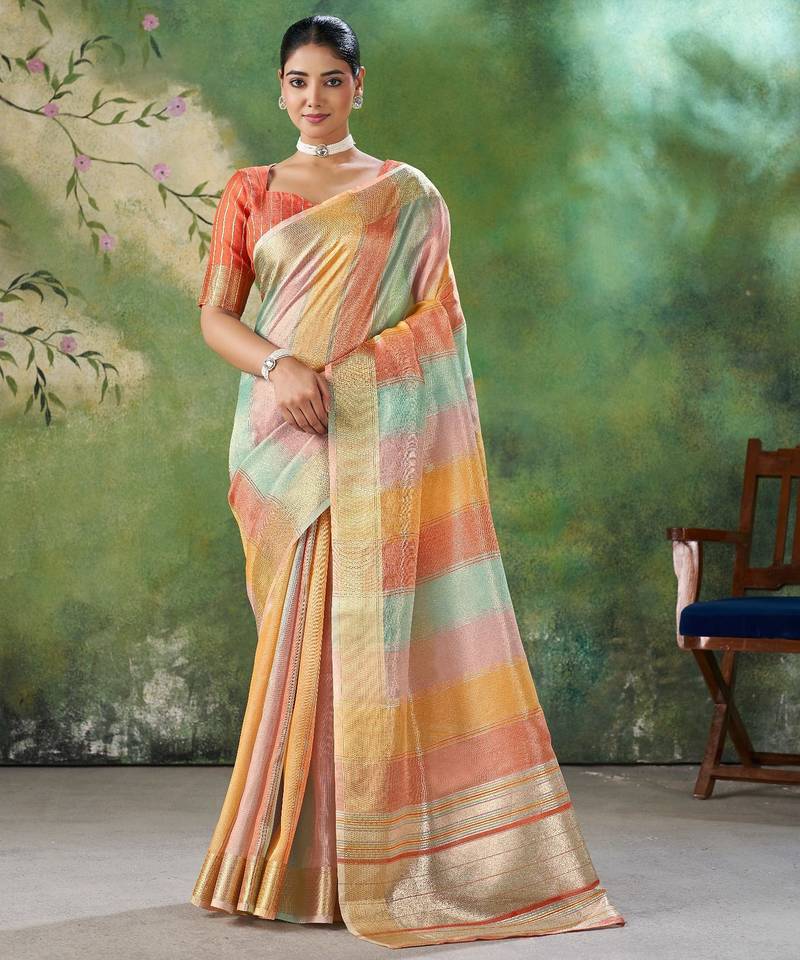 Soft linen cotton silk saree with gold zari weaving | elegant party & wedding wear saree