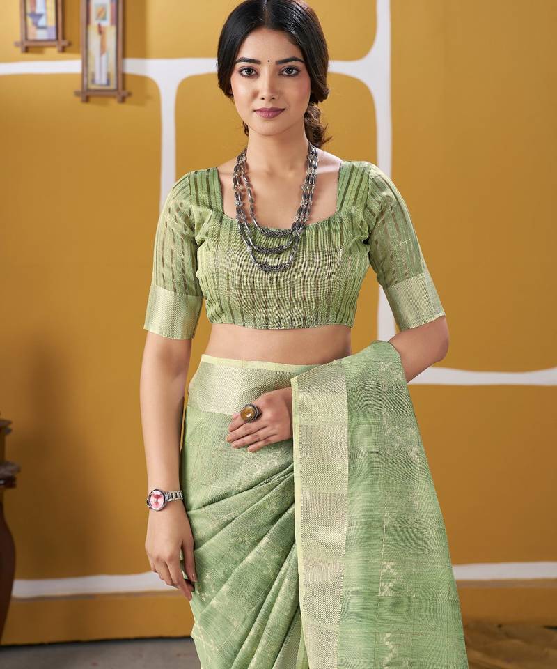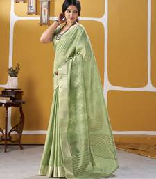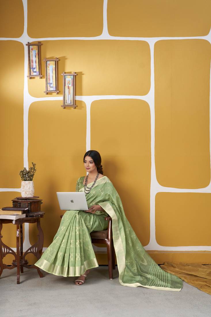 Soft linen cotton silk saree with gold zari weaving | elegant party & wedding wear saree