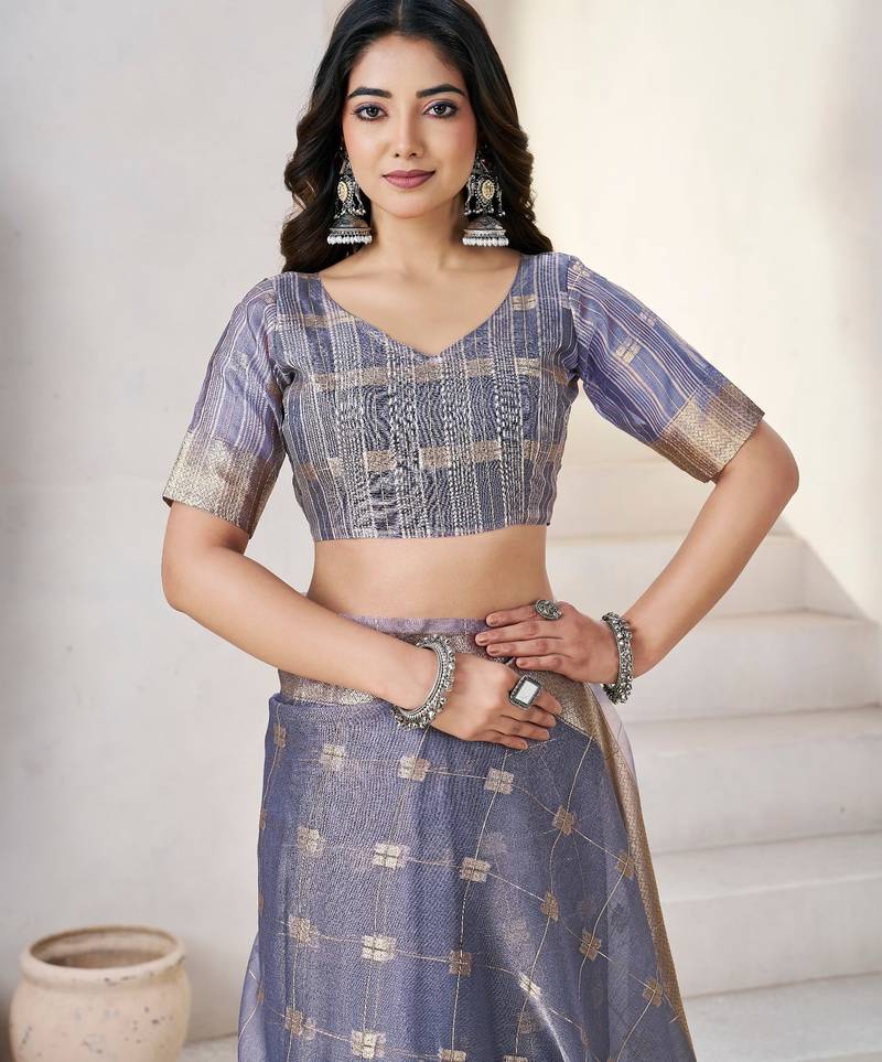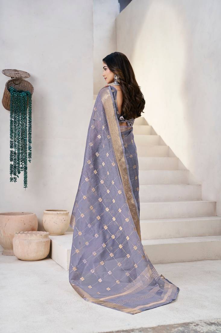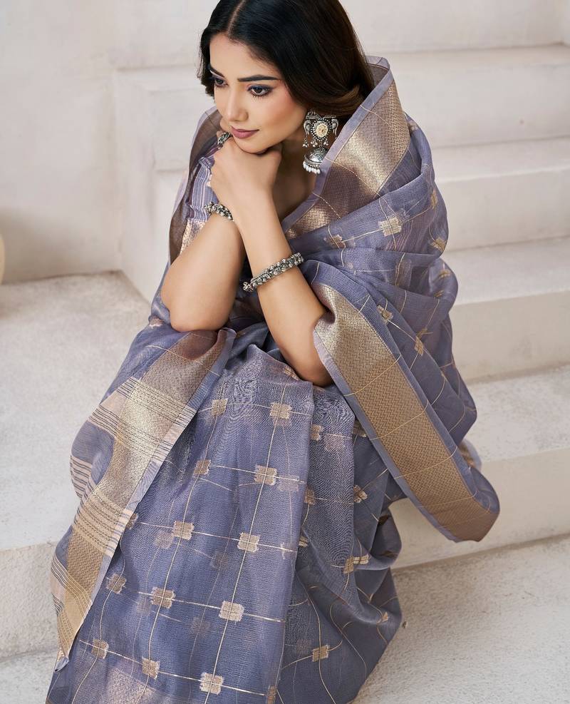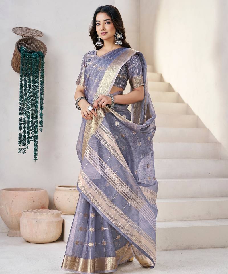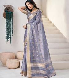 Soft linen cotton silk saree with gold zari weaving | elegant party & wedding wear saree