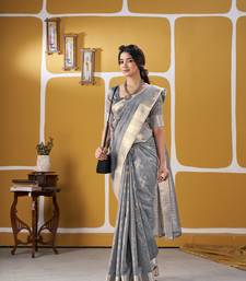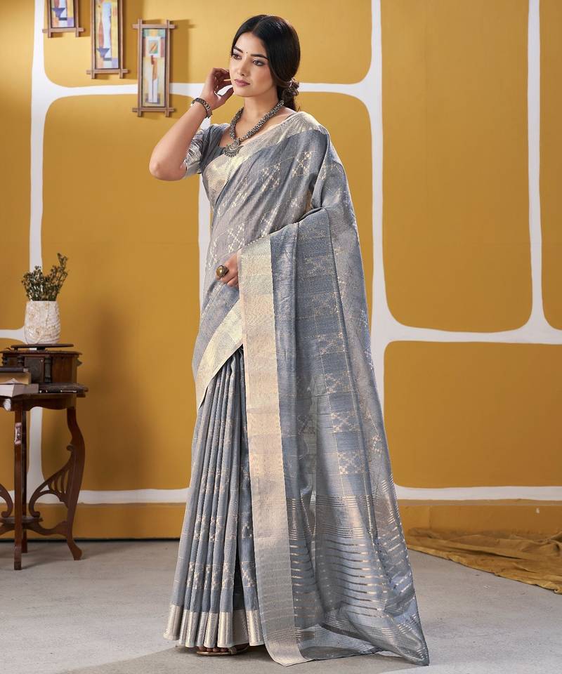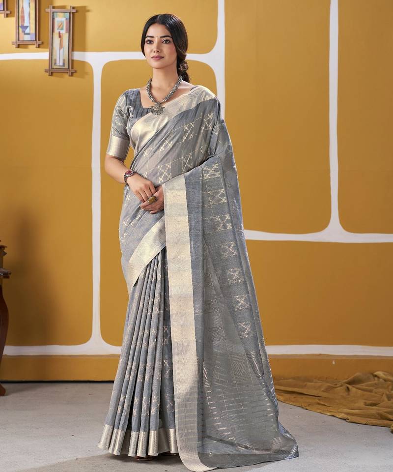 Soft linen cotton silk saree with gold zari weaving | elegant party & wedding wear saree