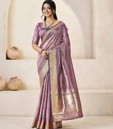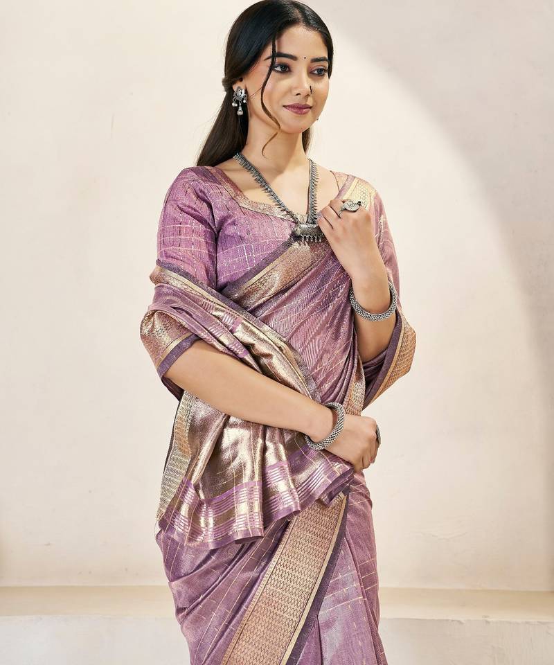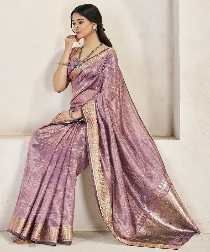 Soft linen cotton silk saree with gold zari weaving | elegant party & wedding wear saree