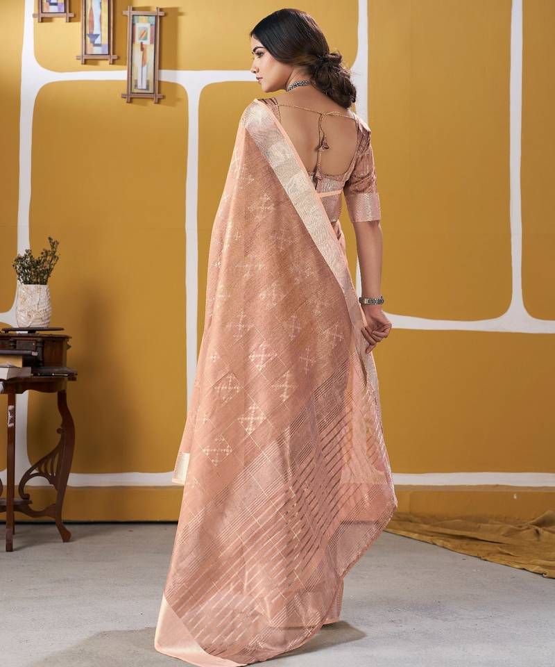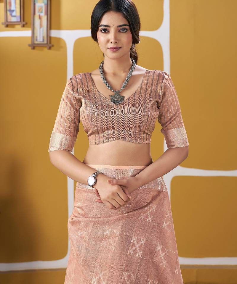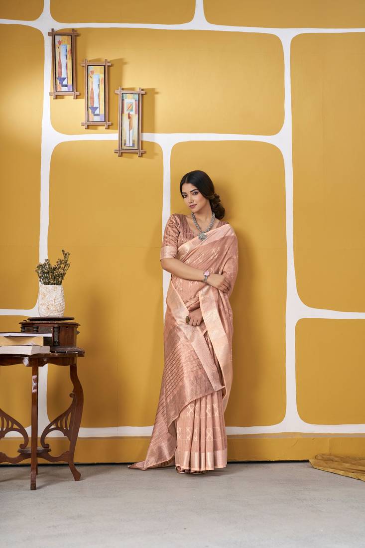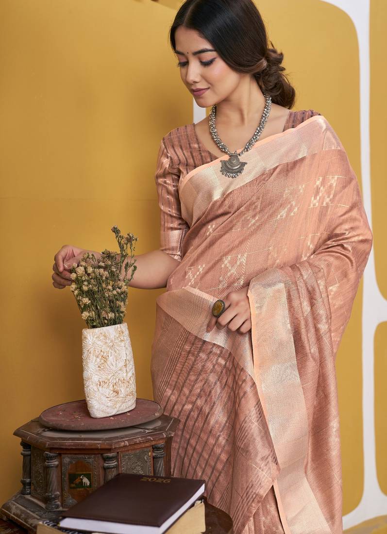 Soft linen cotton silk saree with gold zari weaving | elegant party & wedding wear saree